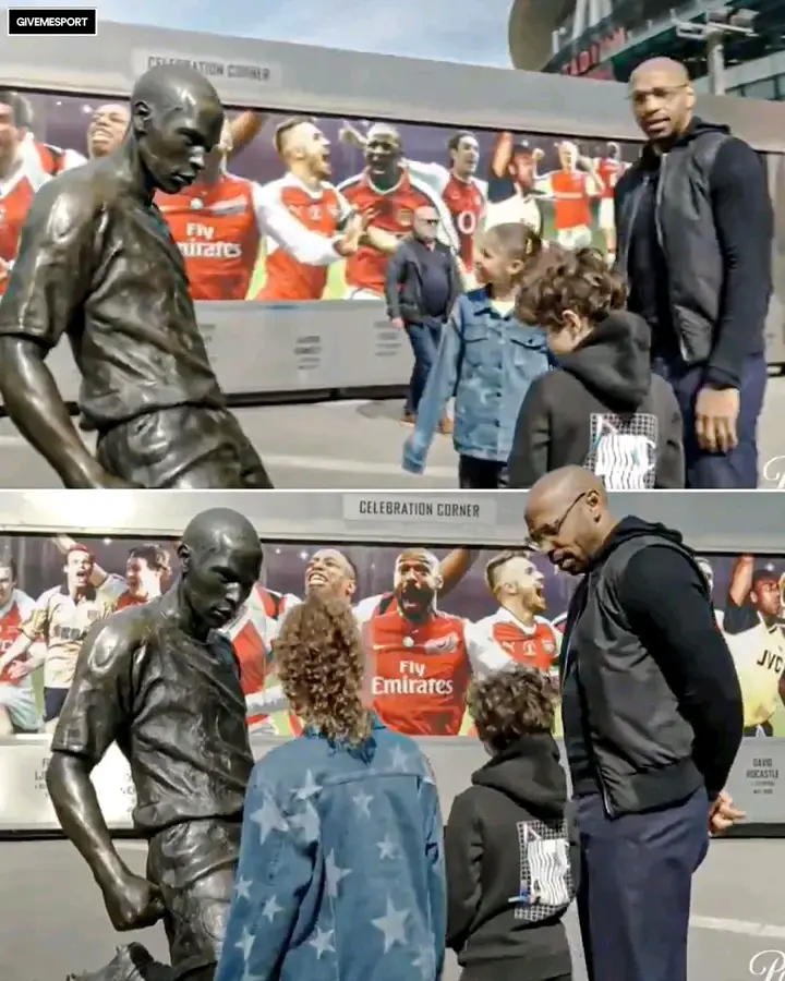 Football fans and social media users have been left buzzing after seeing what one of former France and Arsenal legendary attacker, Thierry Henry children asked him after he showed them a statue of himself outside the Emirates Stadium.