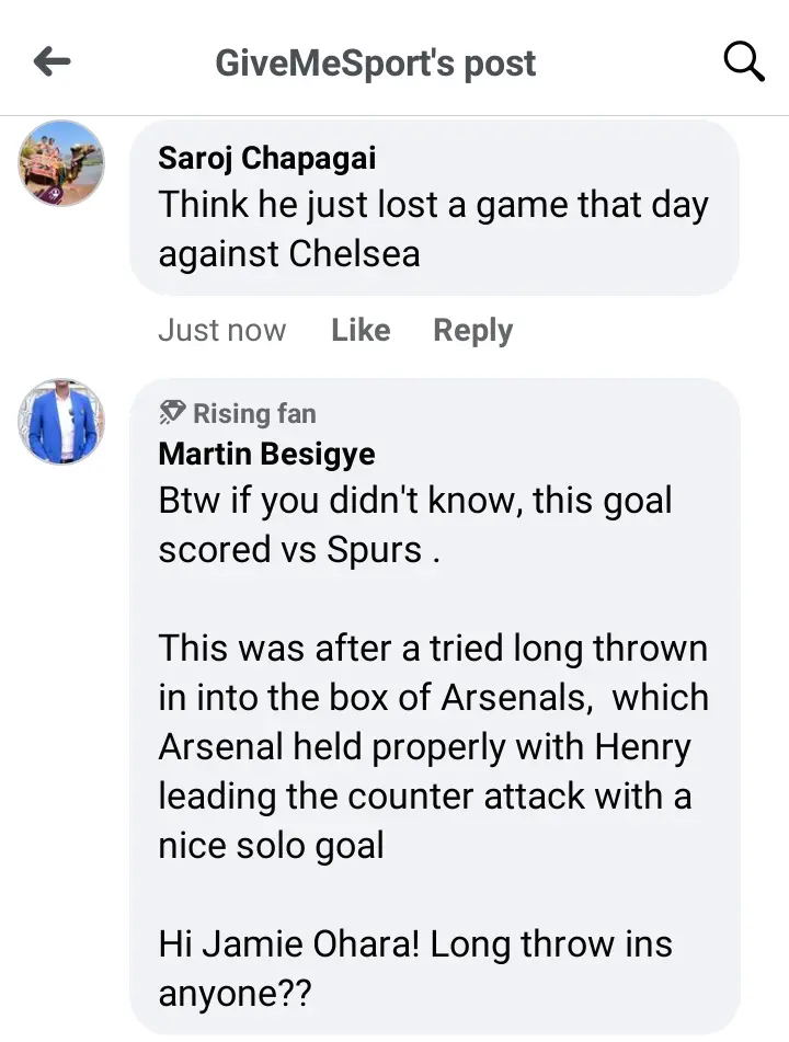 This Facebook post, has attracted reactions from football fans and social media users, as some have called Henry a great legend, while some have called his response a savage one.